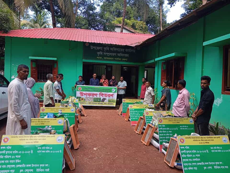 লামায় তেলজাতীয় ফসলের উৎপাদন বৃদ্ধির লক্ষ্যে উপকরণ বিতরণ।