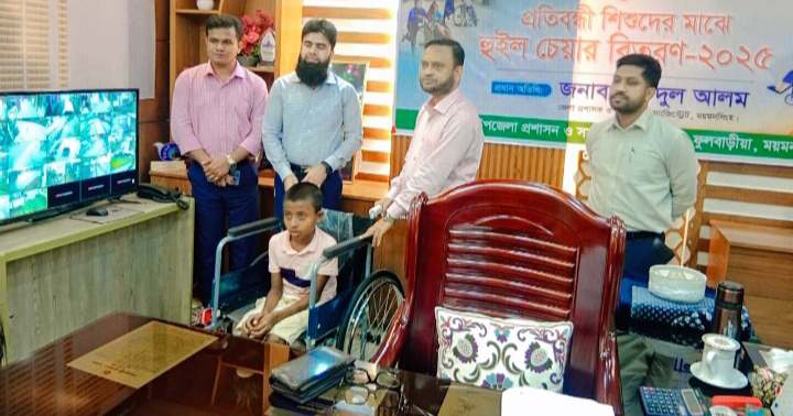ময়মনসিংহ ফুল বাড়িয়া প্রতিবন্ধী শিশুদের হুইল চেয়ার বিতরণ করেন উপজেলার বিভিন্ন ইউনিয়ন থেকে সমাজ সেবা অফিসের উদ্যোগে ১৪ জুলাই সোমবার দুপুর ৩ টায় উপজেলা নির্বাহী অফিসারের রুমে। উপস্থিত ছিলেন ময়মনসিংহ জেলা প্রশাসক মোঃ মুফিদুল আলম, ফুলবাড়িয়া উপজেলা নির্বাহী অফিসার মোঃ আরিফুল ইসলাম, সমাজসেবা অফিসার মোঃ মোজাম্মেল হক, সমাজসেবা কর্মী দেলোয়ার হোসেন, রুবেল মিয়া সহ অন্যান্য নেতৃবৃন্দ।