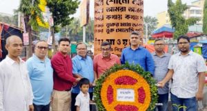 জুলাই গনঅভ্যুত্থান দিবস উপলক্ষ্যে খুলনা প্রেসক্লাবের পক্ষ থেকে সকল শহীদের প্রতি শ্রদ্ধা নিবেদন করা হয়েছে। আজ ৫ আগষ্ট বিকালে নগরীর শিববাড়ি মোড়ে নবনির্মিত জুলাই শহীদ স্মৃতিস্তম্ভে খুলনা প্রেসক্লাবের পক্ষ থেকে পুস্পমাল্য অর্পন করে শহীদদের প্রতি গভীর শ্রদ্ধা জানানো হয়। শ্রদ্ধা নিবেদন কালে উপস্থিত ছিলেন, খুলনা প্রেসক্লাবের আহবায়ক এনামুল হক, সদস্য সচিব রফিউল ইসলাম টুটুল, কার্যনির্বাহী সদস্য শেখ দিদারুল আলম, কৌশিক দে, আহমদ মুসা রঞ্জু, আশরাফুল ইসলাম নুর, ক্লাব সদস্য এহতেশামুল হক শাওন ও খলিলুর রহমান সুমন,ক্লাবের অস্থায়ী সদস্য মো: সোহেল রানা প্রমুখ। এছাড়া জুলাই গনঅভ্যুত্থানের সকল শহীদের আত্মার মাগফেরাত কামনায় বাদ আসর খুলনা প্রেসক্লাবের মসজিদে দোয়া মাহফিল অনুষ্ঠিত হয়।