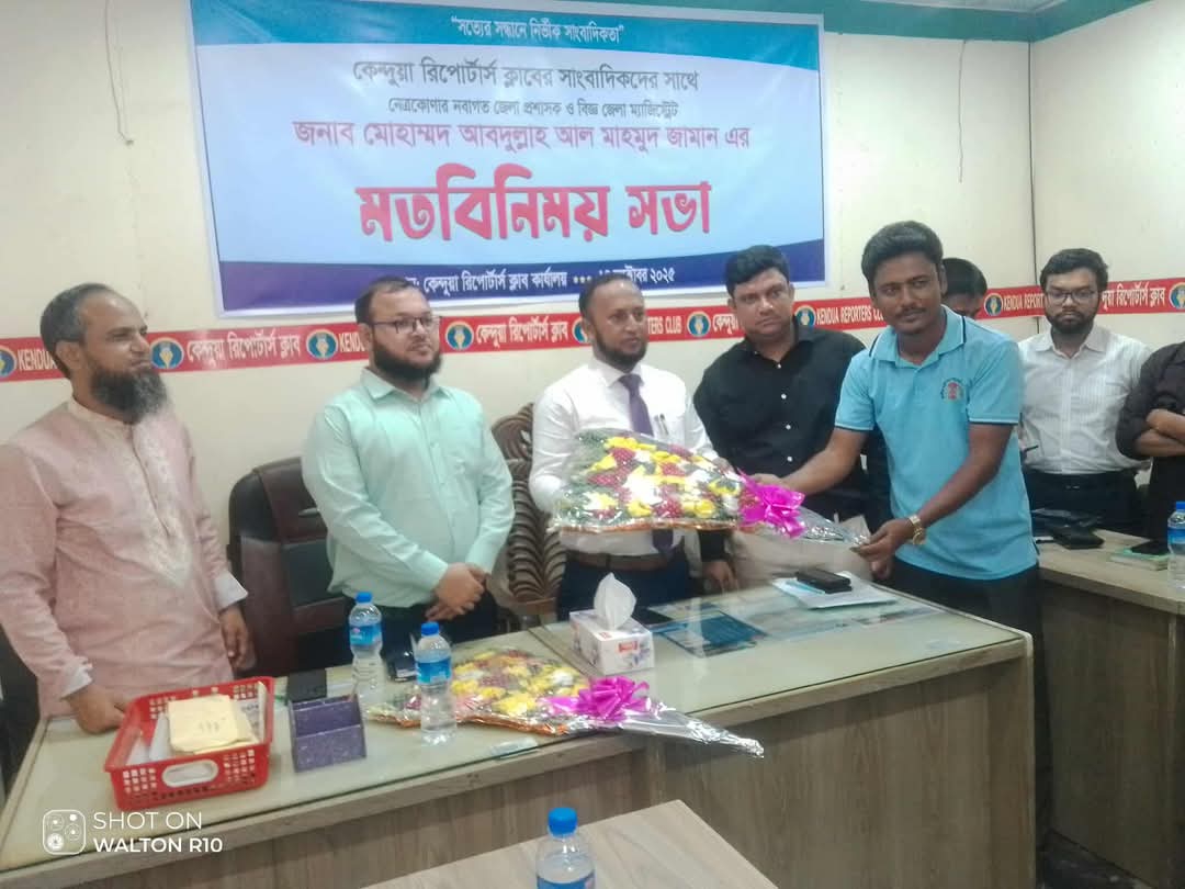 মোহাম্মদ সালাহ উদ্দিন,ক্রাইম রিপোর্টাঃ নেত্রকোনা জেলা প্রশাসক মোহাম্মদ আব্দুল্লাহ আল মাহমুদ জামান কেন্দুয়ায় আগমনে বিভিন্ন সংগঠনের নেতৃবৃন্দ ফুলেল শুভেচছা দিয়ে