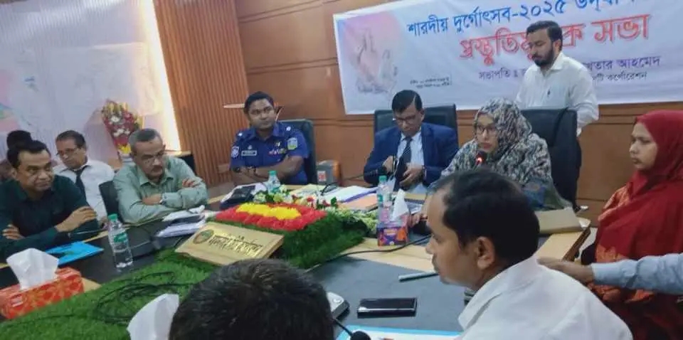 মকবুল হোসেন, ময়মনসিংহ জেলা প্রতিনিধি; ময়মনসিংহ সিটি কর্পোরেশন আয়োজিত আসন্ন শারদীয় দুর্গোৎসব ২০২৫ উদযাপন উপলক্ষে প্রস্তুতি সভা সিটি করপোরেশনের শহীদ