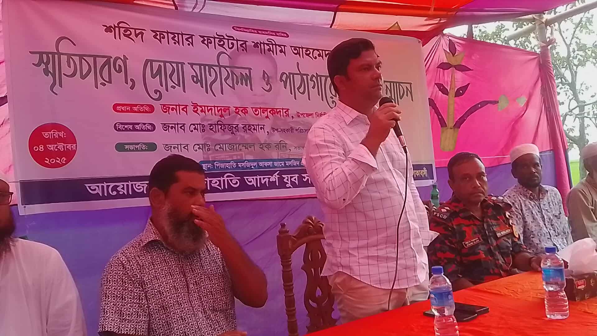 কেন্দুয়ায় শহিদ ফায়ার ফাইটার শামীম আহমেদ এঁর স্মরণে স্মৃতিচারণ, দোয়া মাহফিল ও পাঠাগারের নাম পলক উন্মোচন।
