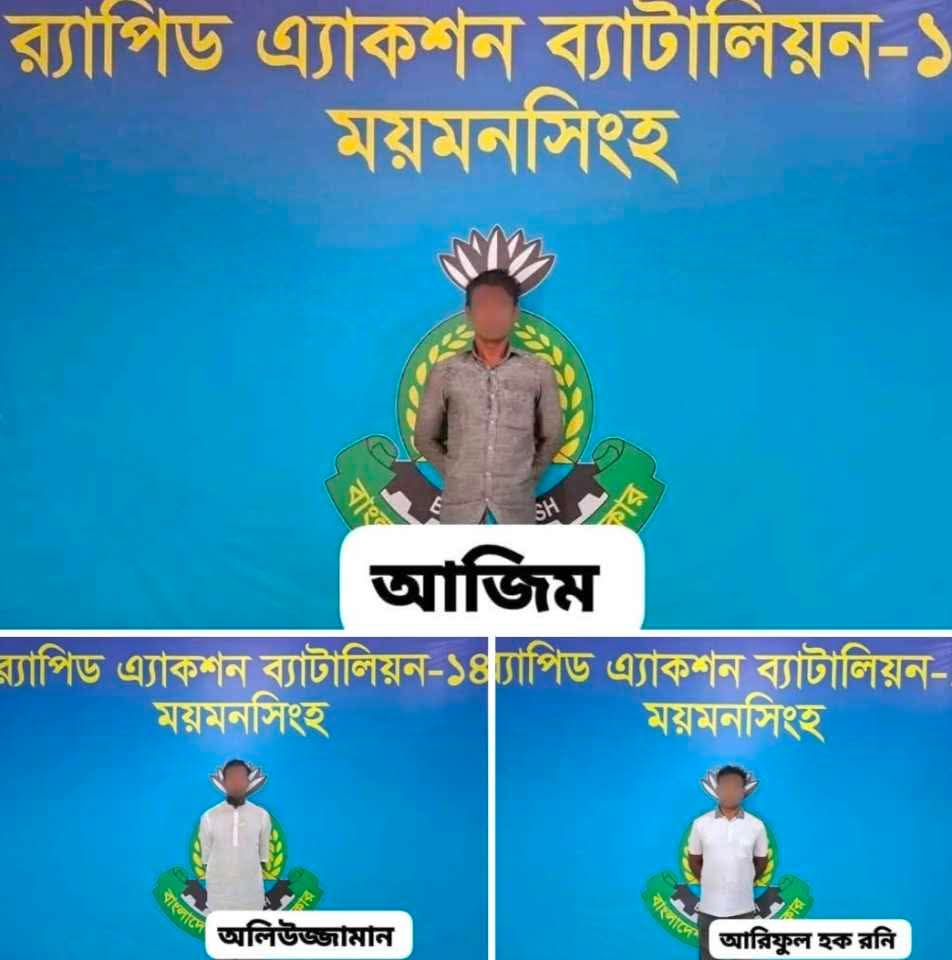 ময়মনসিংহ সদর কোম্পানি র্যাব ১৪ কর্তৃক আসামি গ্রেফতার ০৩।
