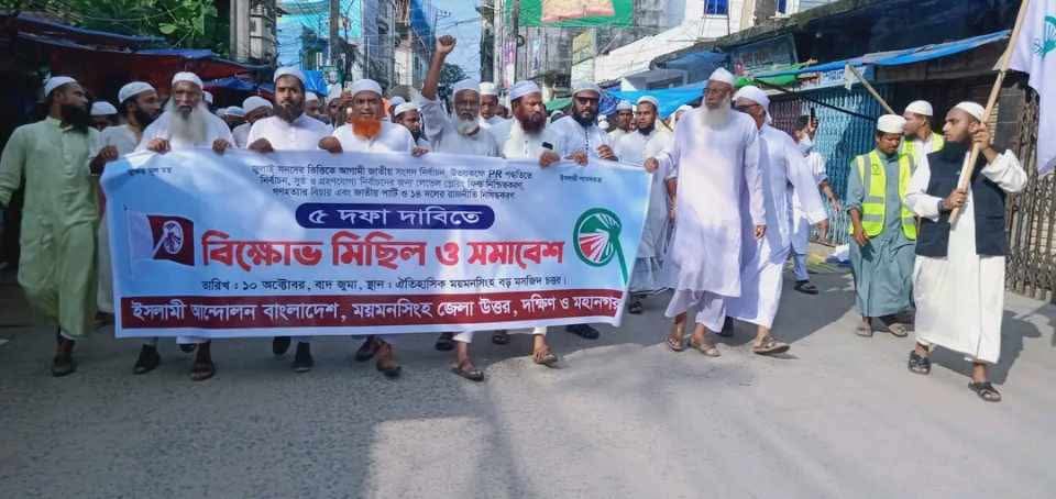 ময়মনসিংহে ইসলামী আন্দোলন বাংলাদেশ উদ্যোগে বিক্ষোভ মিছিল ও সমাবেশ অনুষ্ঠিত।